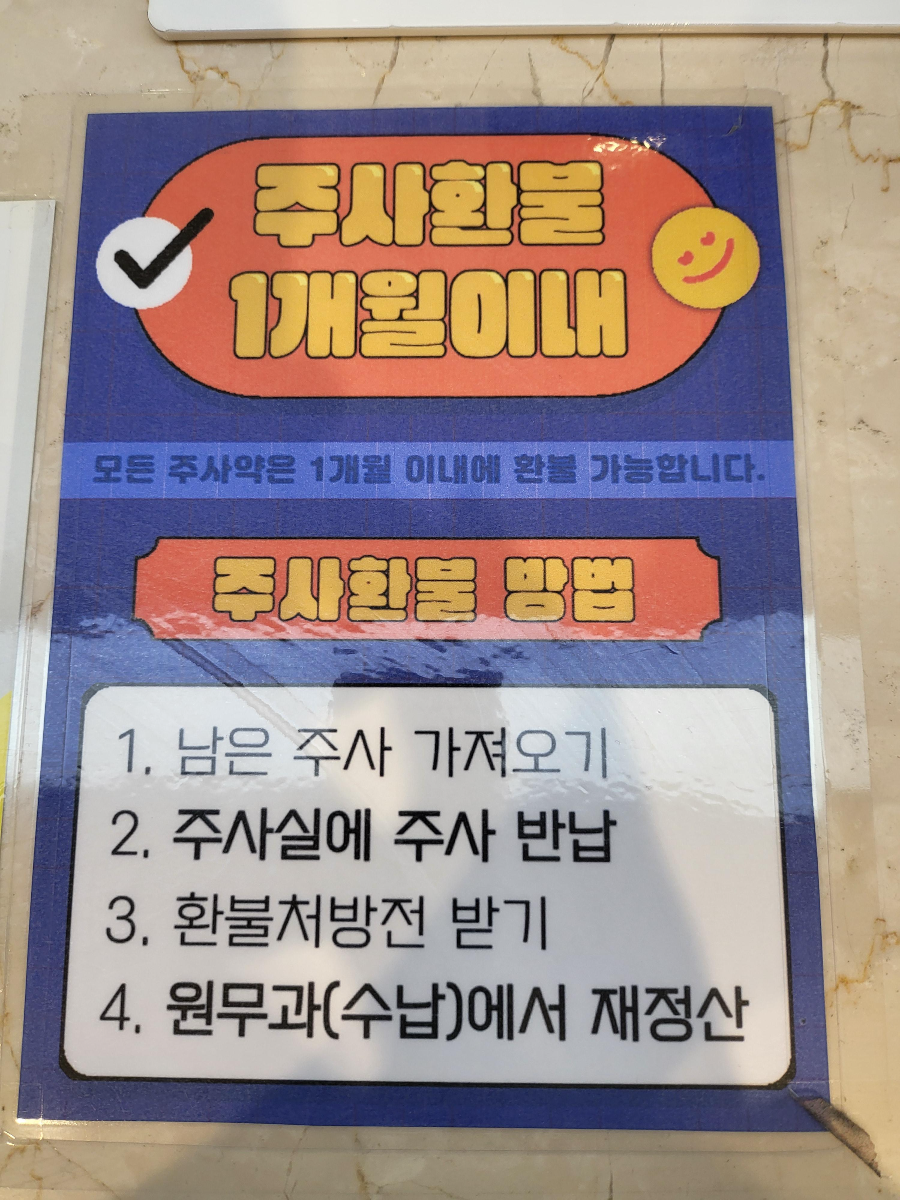 < 상봉 마리아에스 병원 주사 환불 방법>